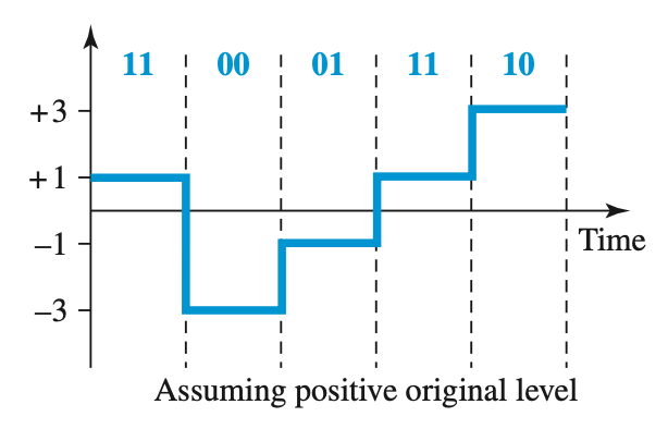 잘 보면 하나의 시그널이 2개의 데이터를 가지고 있고, 이를 구현하기 위해 4개의 서로 다른 전압을 사용함을 알 수 있다.