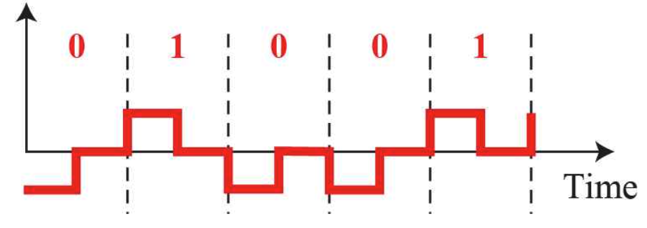 0과 1 둘중 하나는 무조건 0으로 처리하며, 나머지 한개의 데이터는 양과 음의 전압을 번갈아 가면서 처리한다.