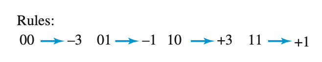 이때 두번째 데이터에서 진폭 평균이 1이 됐기 때문에 다음에 보내는 데이터는 inversion하여 +--+0+를 -++-0-로 바꿔버린다.