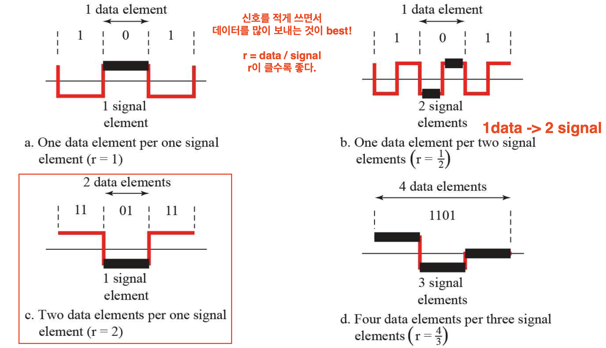 d. 데이터 4개를 신호 3개에 대응시켜 보낸다. 따라서 $r = \frac{4}{3}$