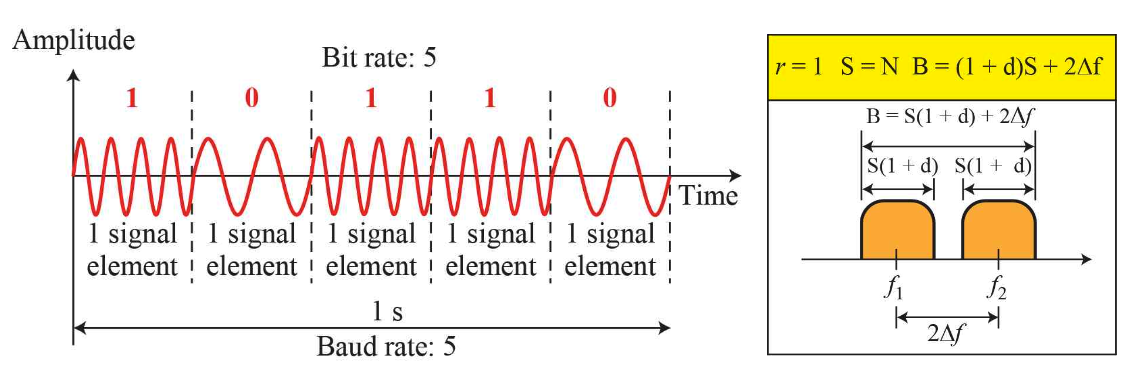 디지털 데이터를 아날로그 신호를 전송하기 위해 필요한 대역폭은 Signal rate에 비례한다.