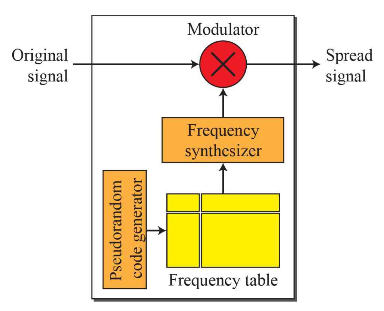 이 과정에서 주파수가 얼마든지 변화할 수 있기 때문에 Spread Spectrum의 종류로 본다.