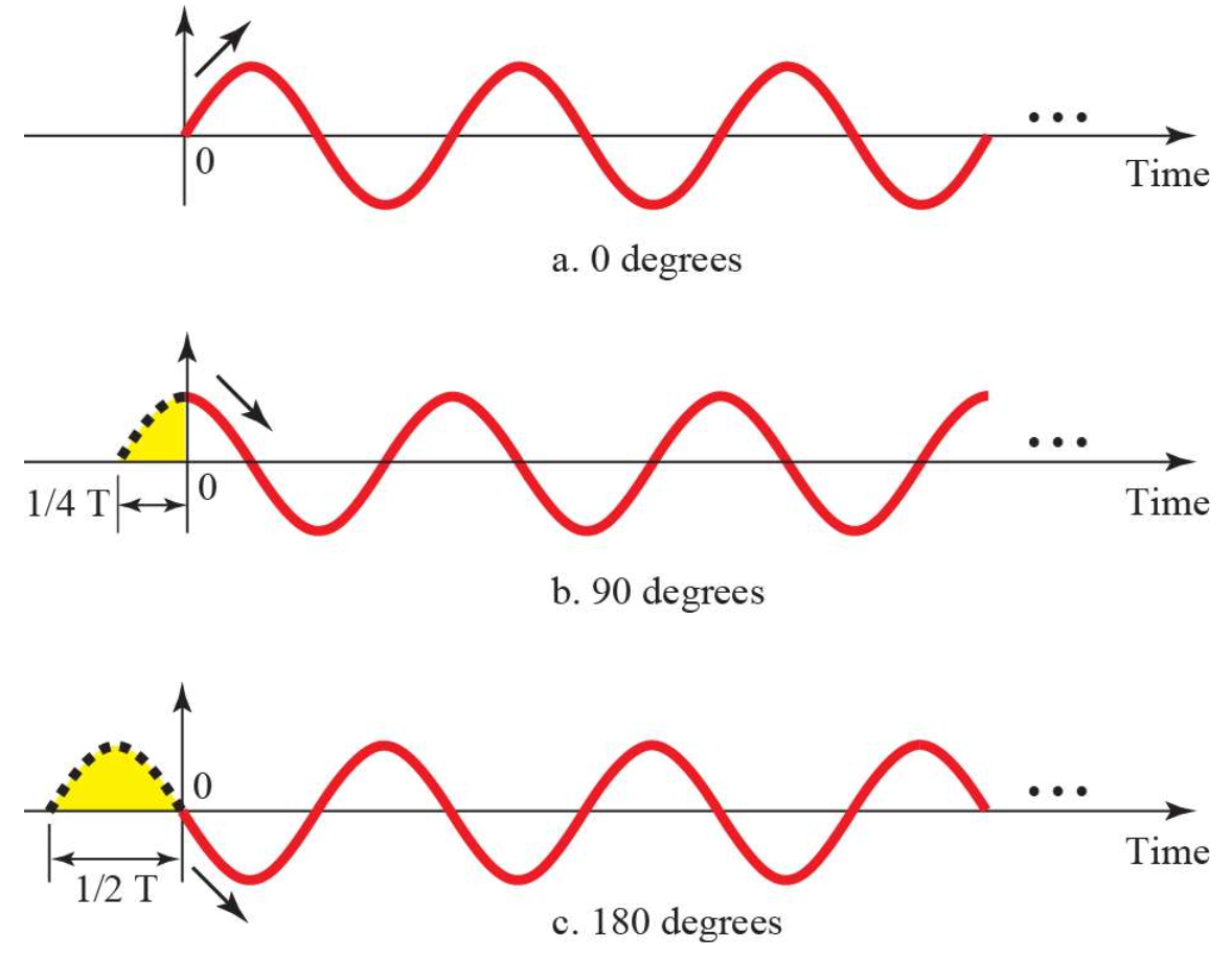 사인파로 보내는 신호의 요소중 위상(Phase)은 x축 방향으로의 대칭이동의 정도를 나타낸다.