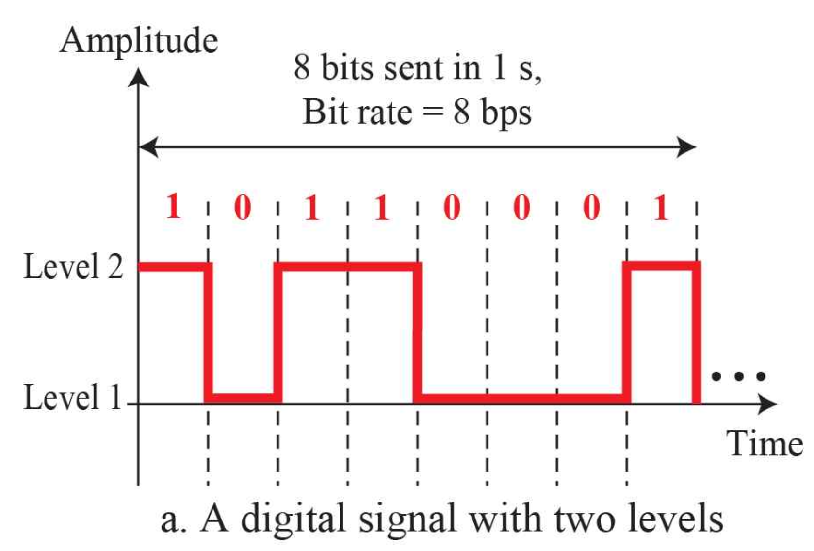 대신에 디지털 신호는 bit rate(frequency를 대신한다.)이라는 특징을 가진다.