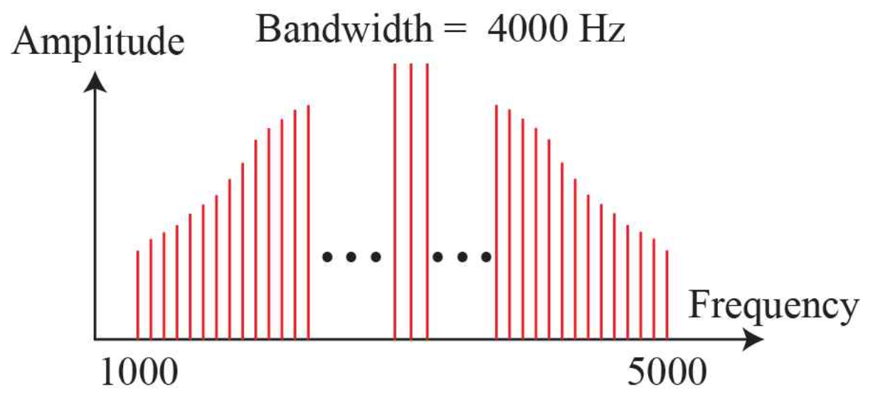 대역폭(Bandwidth)은 신호의 최대 진동수와 최저 진동수를 빼서 구할 수 있다.