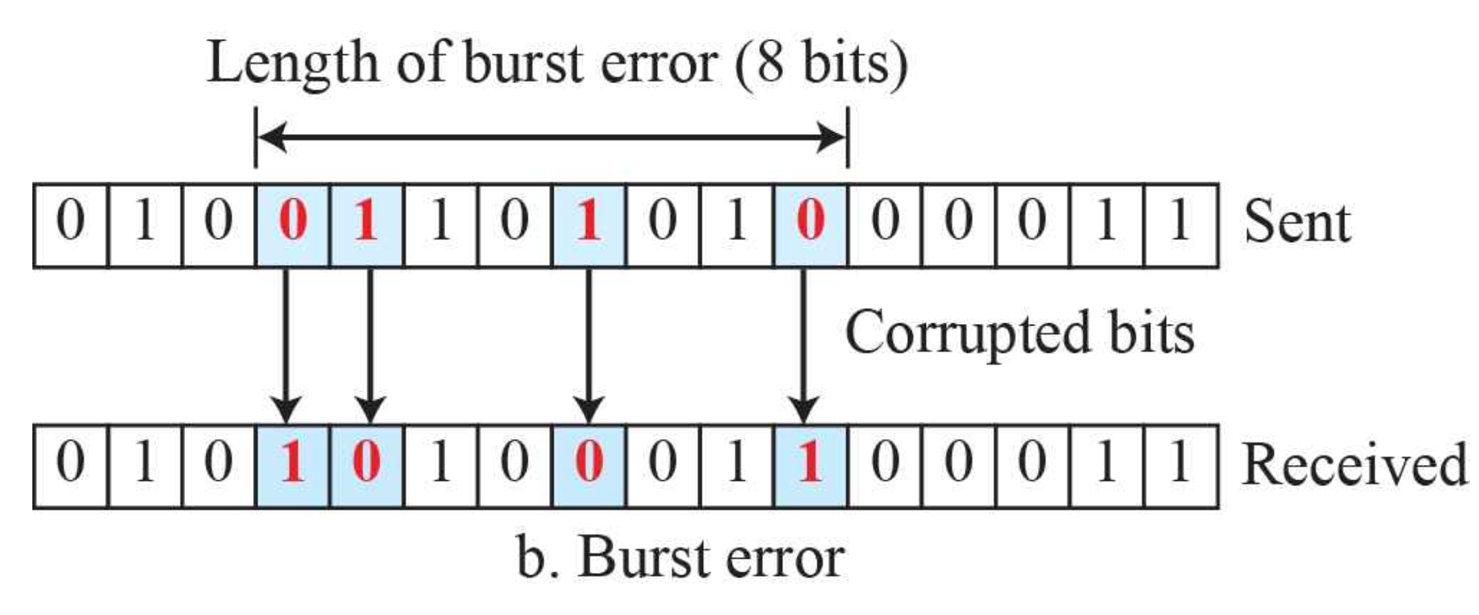Single-bit error는 위와같이 하나의 비트만 바뀐것을 말하며, 이 바뀐 비트는 Corrupted bit 라고 불린다.