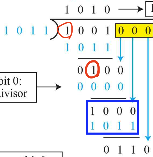 이때 뺄때는 XOR연산(서로 다를때만 1, 같으면 0)을 진행한다. 위에서는 1001과 1011을 XOR연산하므로 0010이 나온다.