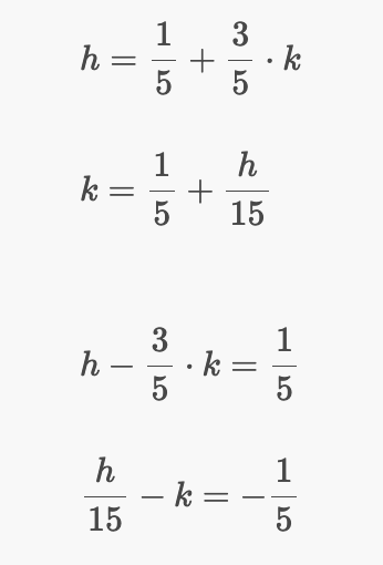 위에서 구한 두 식에 대해 연립 방정식을 세워서 풀면 h와 k는 각각 1/3, 2/9가 나온다.