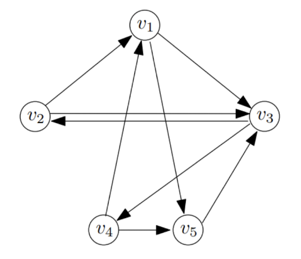 첫번째 row를 보면 v2, v4에서 v1으로 올 확률이 1/2이고 그래프를 다시 확인해보면, 맞다는 것을 알 수 있다.