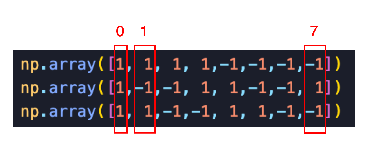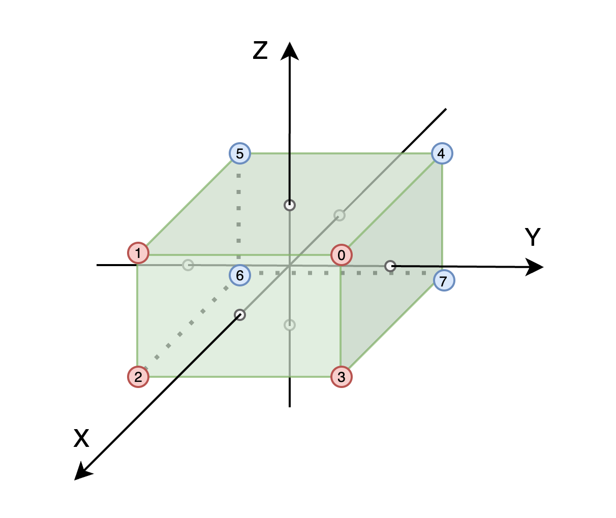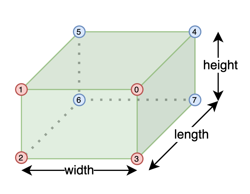 점 위의 숫자는 각 box의 크기가 곱해지기 전의 꼭짓점 좌표 순서이다.