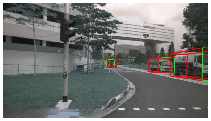 굳이 nusc.render_sample_data 방식으로 방향을 표시하지 않은 이유는 내 방식이 카메라 상에서는 방향을 더 잘 나타낸다고 생각하기 때문이다.