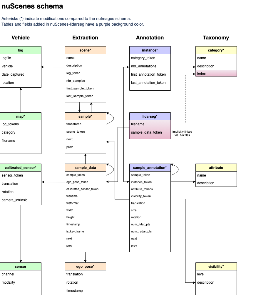 Nuscenes 홈페이지의 스키마를 통해 살짝이나마 유추해볼 수 있다.