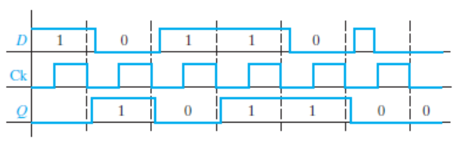 타이밍도를 보면 하강 에지일때 D의 입력이 Q에 바로 반영되는 것이 아니라