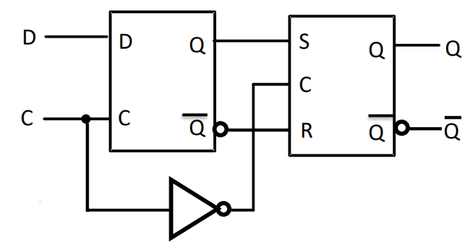 하강 에지-트리거형 D-FF은 두개의 게이트형 래치를 사용합니다.