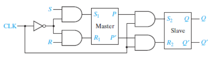 이때 왼쪽에 있는 게이트형 D래치는 Master, 오른쪽에 있는 게이트형 SR래치는 Slave라고 부르며